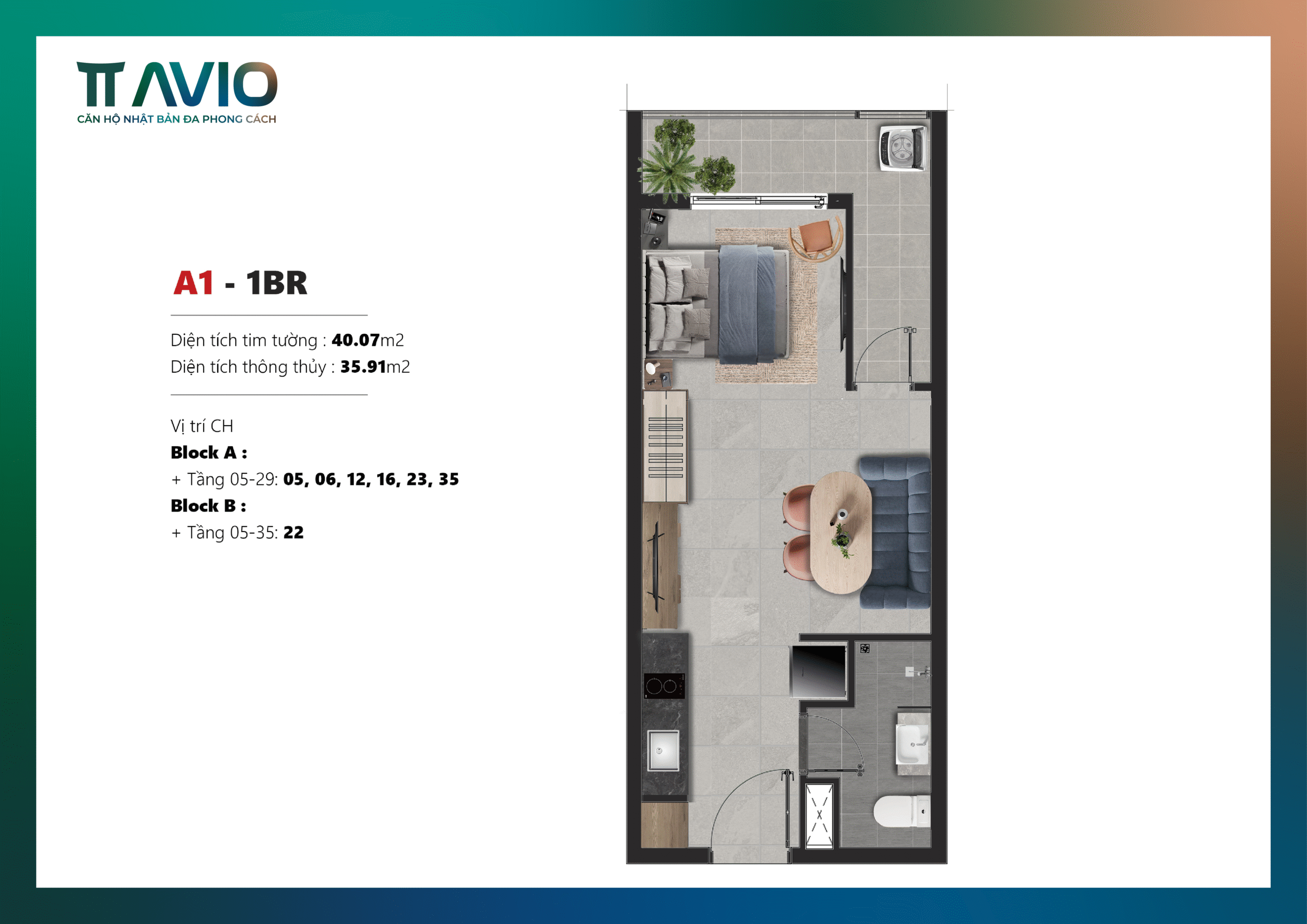 CĂN HỘ MẪU 1PN1WC – 40.07M2