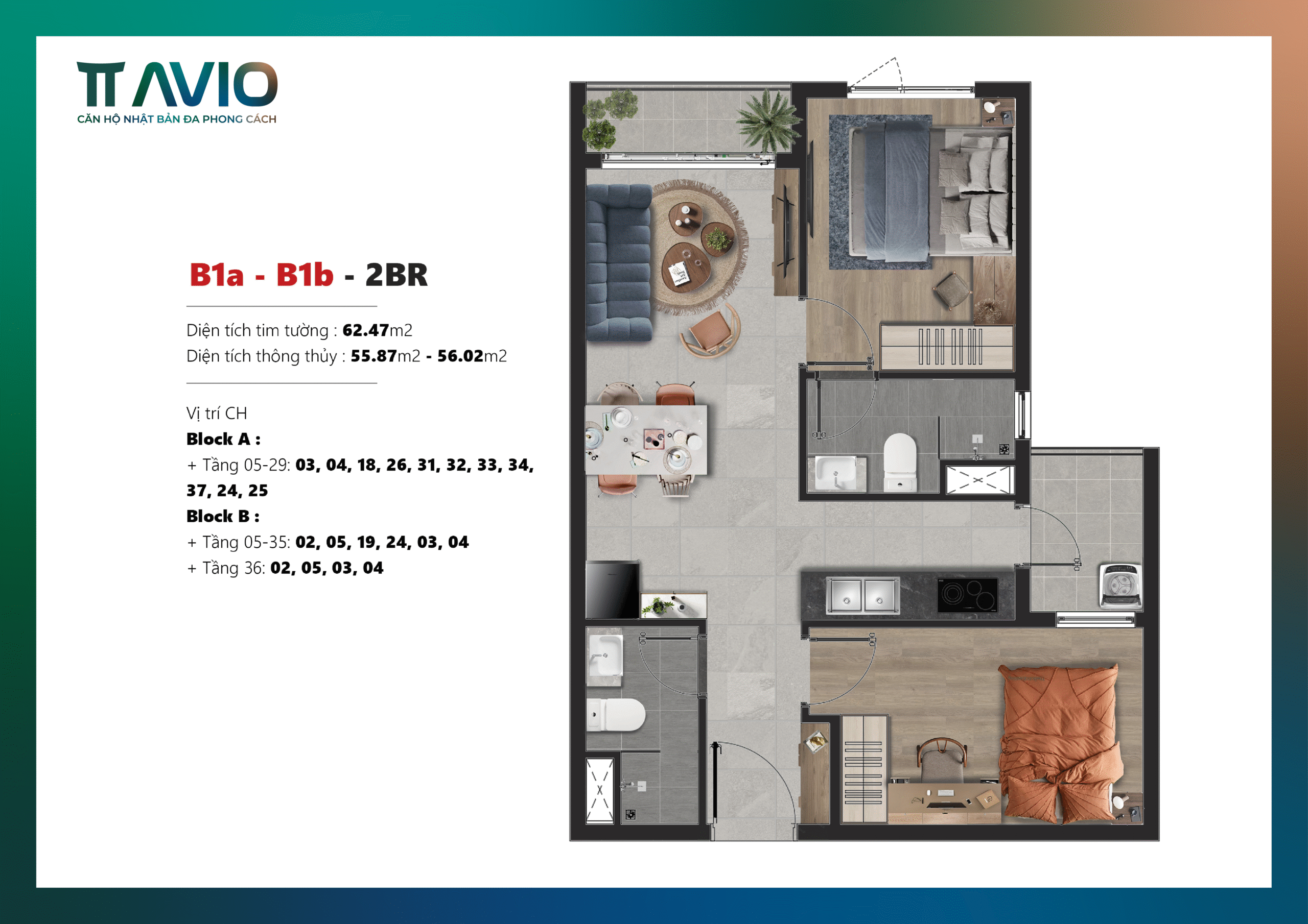 CĂN HỘ MẪU 2PN1WC – 56.25M2