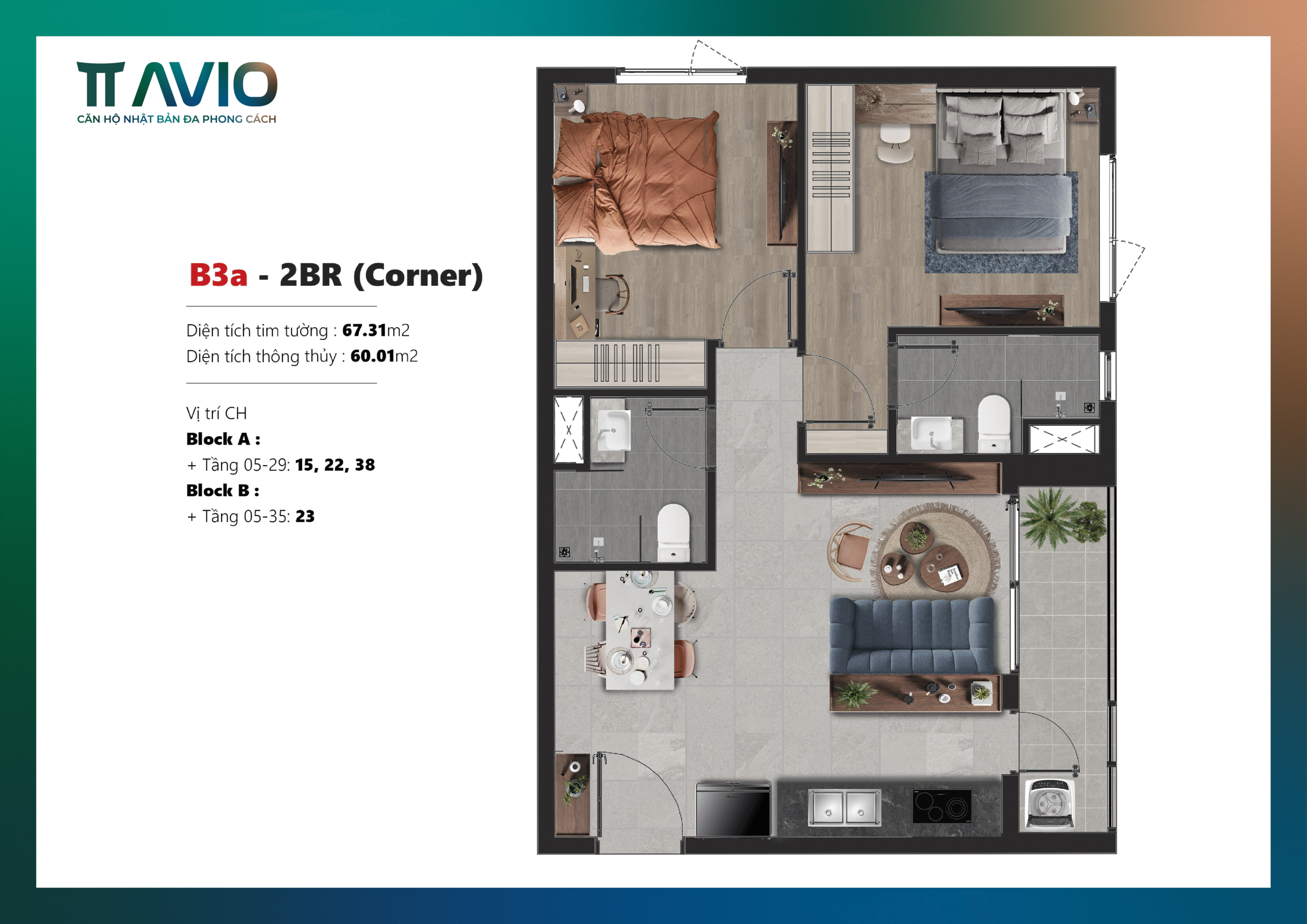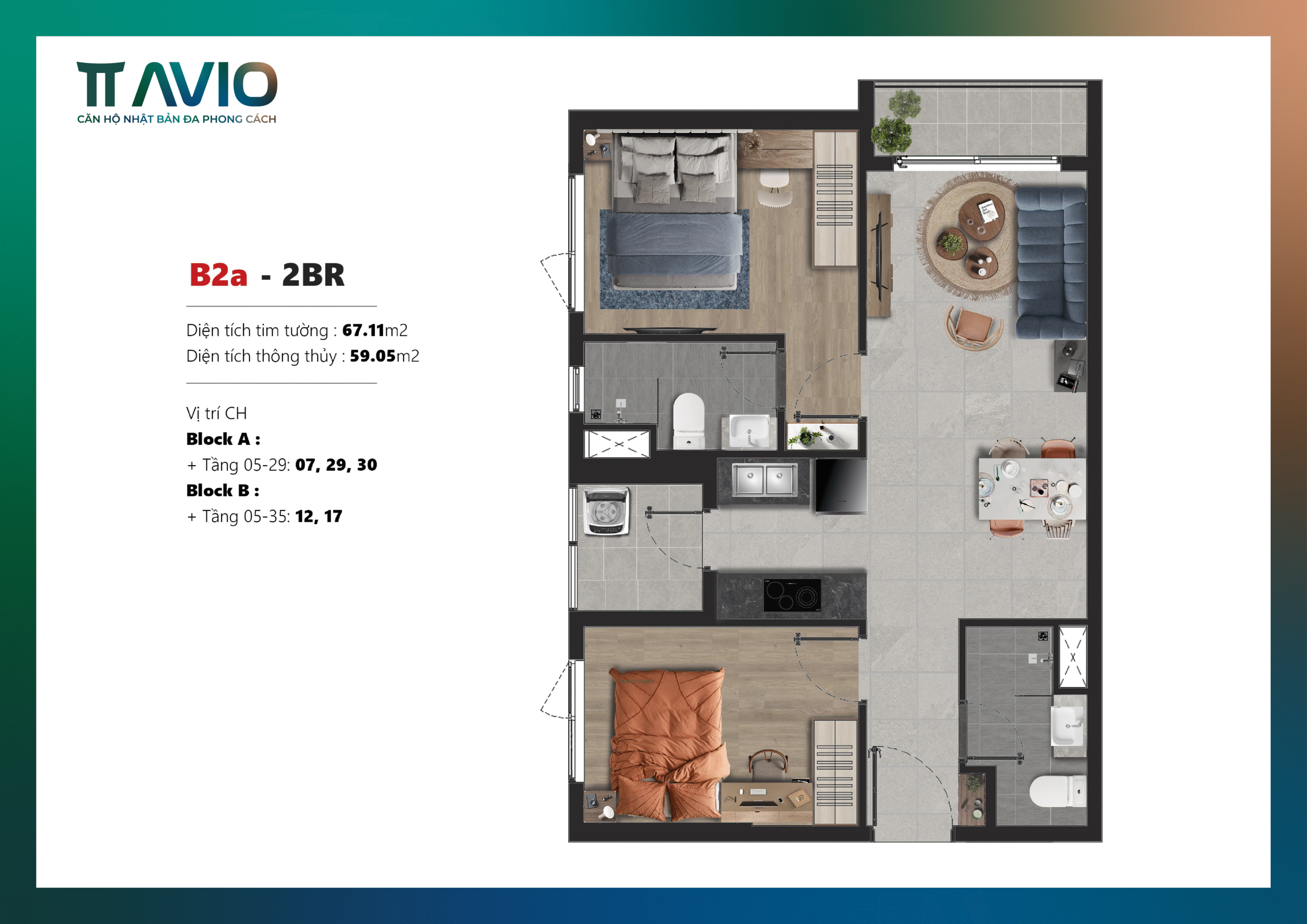 • Diện tích thiết kế căn hộ TT Avio: