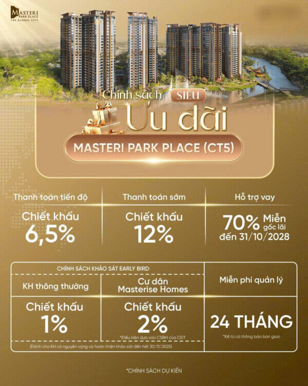 CHÍNH THỨC NHẬN BOOKING PHÂN KHU MASTERI PARK PLACE